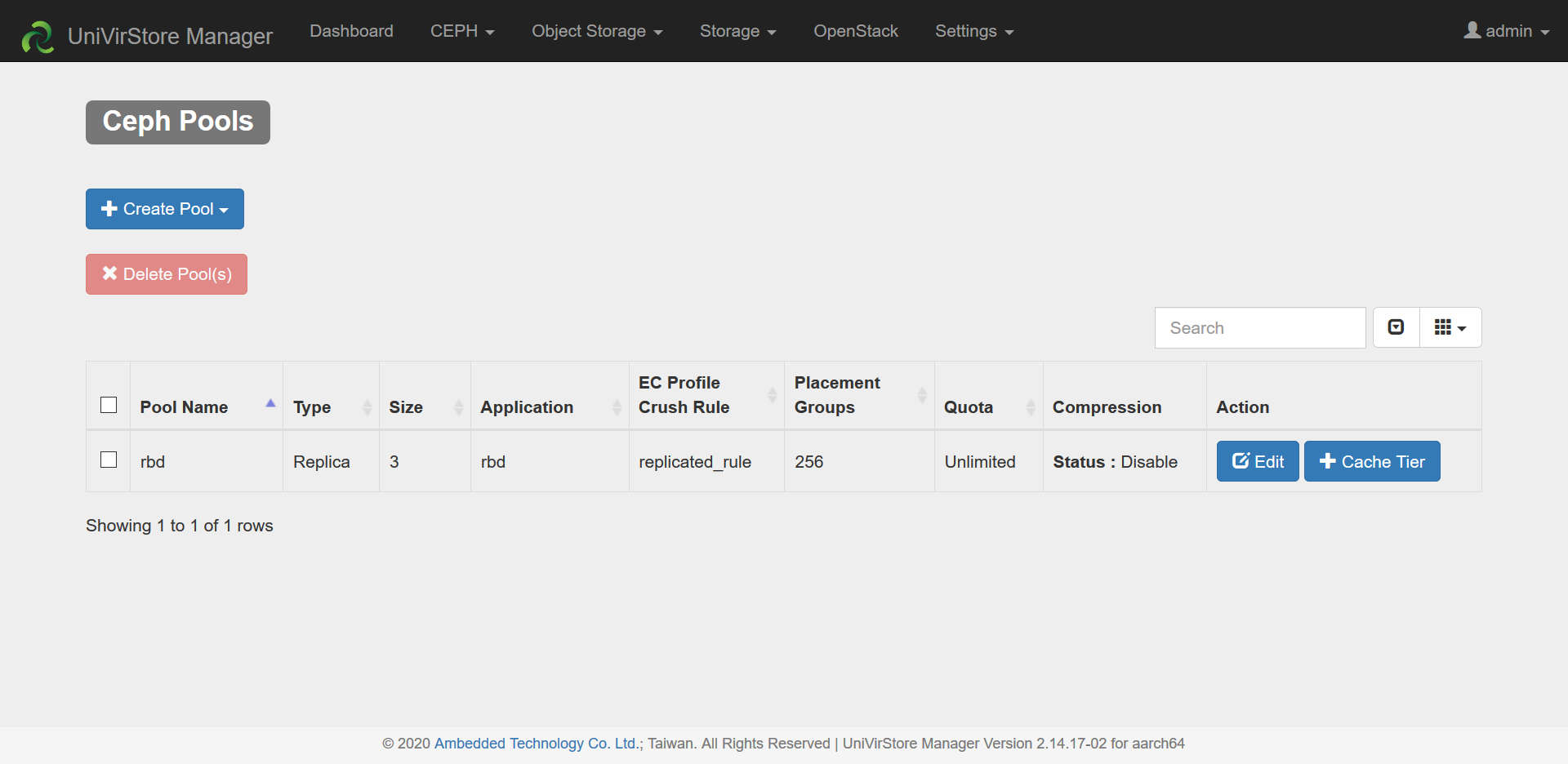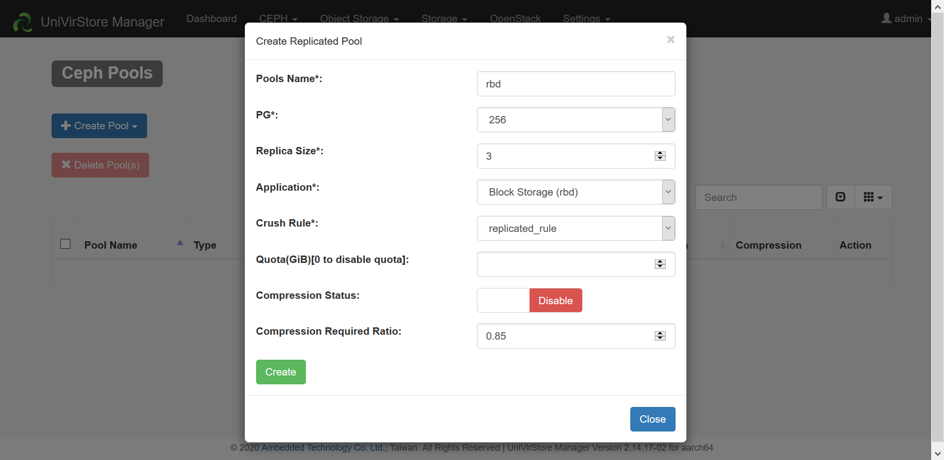 1-1. Select the menu "CEPH" -> "Pools". Create a pool "rbd".