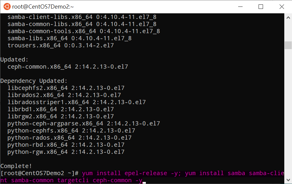 $ yum install samba samba-client samba-common targetcli ceph-common -y