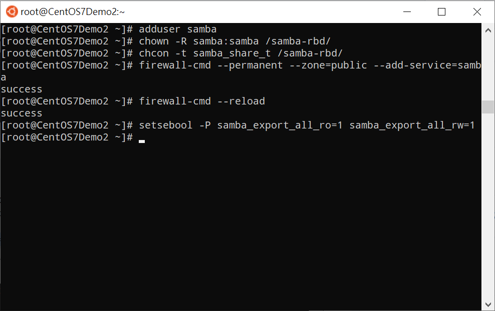 $ firewall-cmd --permanent --zone=public --add-service=samba